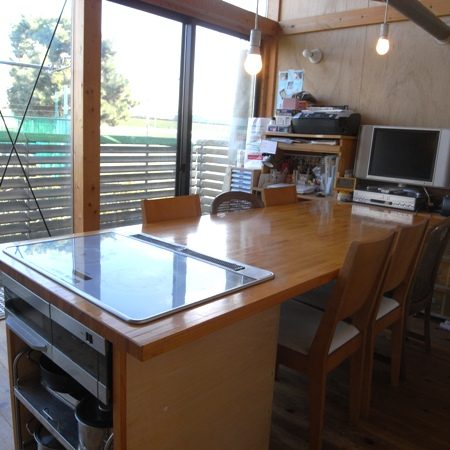長さ2.2mのテーブルにIHクッキングヒーターを組み込んで、調理台兼食卓