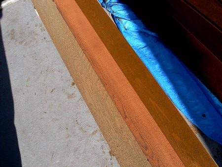 先日、板の裏側へキシラデコール カラレス(防腐防蟻剤)を塗った表側に