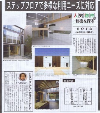 4軒の賃貸長屋sora 新聞で紹介されました 美術館のような賃貸長屋 2011.05.142019.07.02 昨日に続き、ブログに載せるの忘れていたよシリーズです。 神奈川建築コンクール 住宅部門優秀賞をいただいた、4軒の 賃貸長屋「sora」が全国賃貸住宅新聞で紹介されました。 遅ればせながらお伝えしておきます。